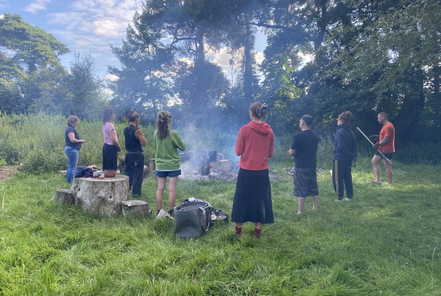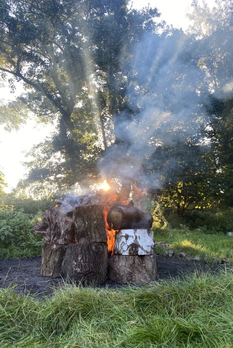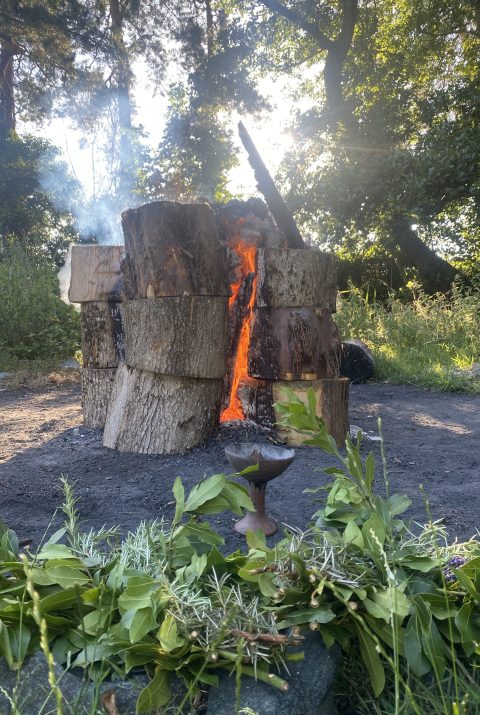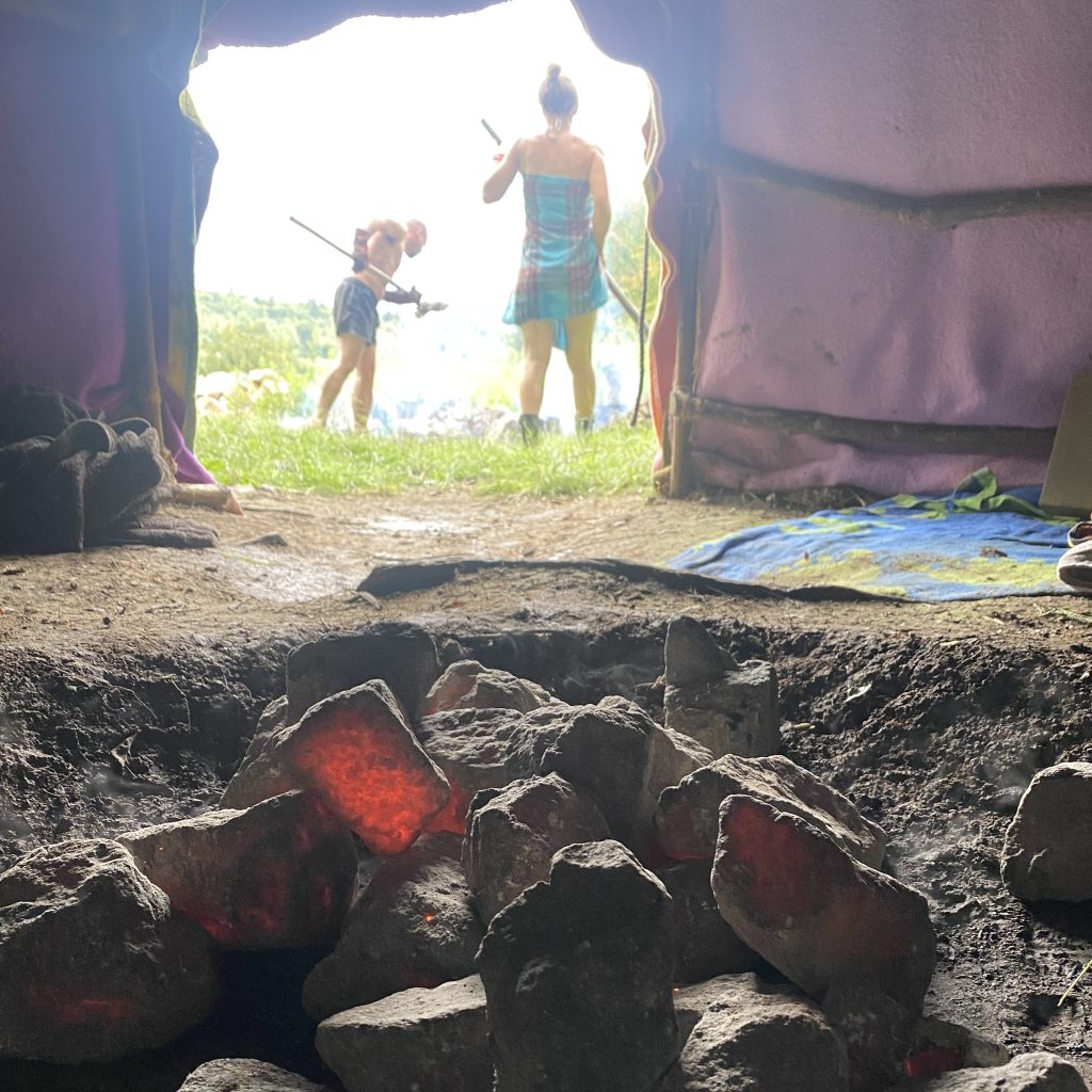Essentially it is a natural steam bath, made by driving pliant willow into the ground and covered with blankets. Hot volcanic basalt stones are heated on a fire outside then placed in a hole in the centre and dowsed with water and herbs. The medicinal steam and the healing power of the elements help one to open and cleanse.